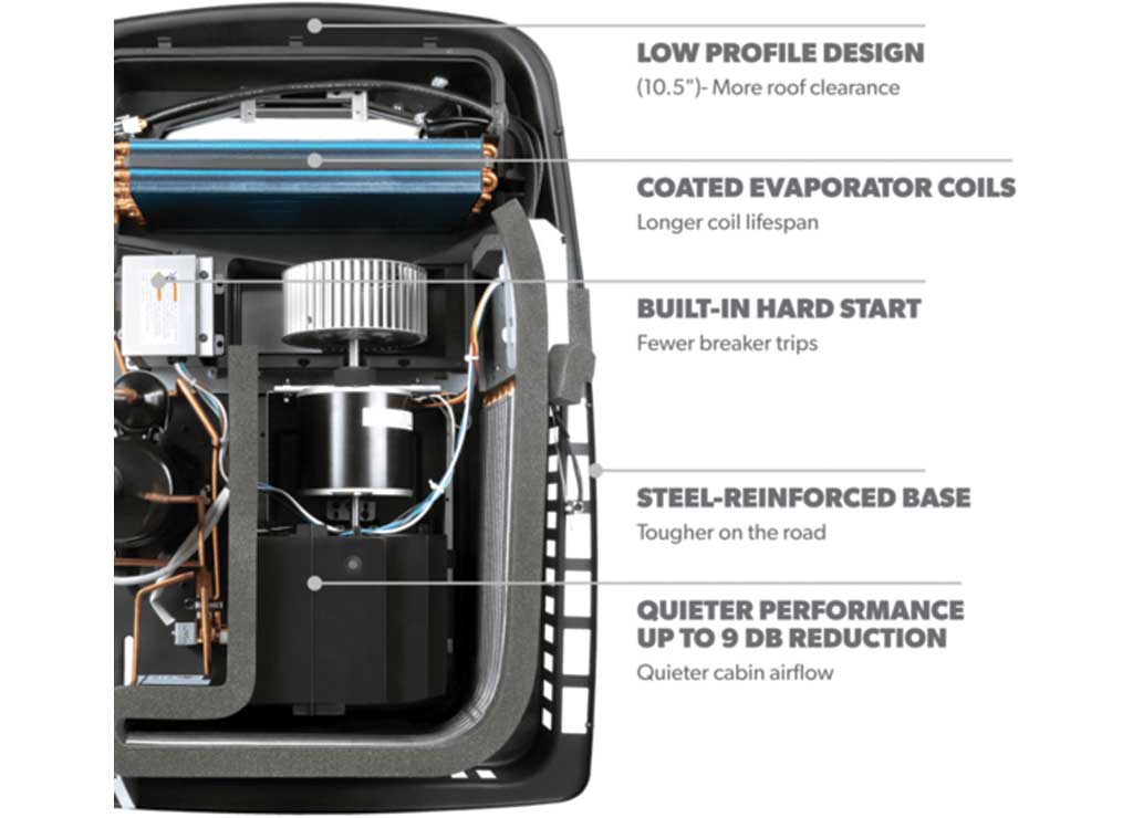 FreshJet 5 is Dometic’s low-profile rooftop air conditioner designed as a direct Penguin II replacement. With built-in hard start, quieter performance, a reinforced steel base, and options with or without a heat pump, it’s ideal for new RV builds, universal replacements, and upgrades—delivering modern comfort without changing the fit.