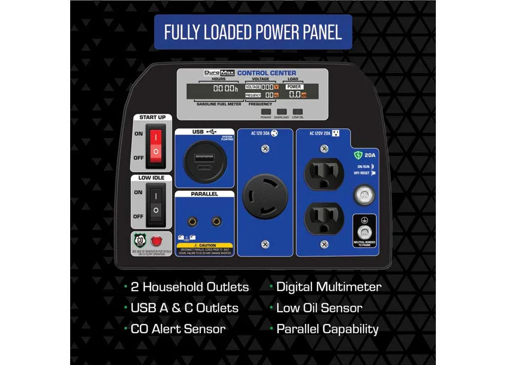 This DuroMax Dual Fuel Digital Inverter Generator with CO Alert delivers clean, quiet power for camping, tailgating, outdoor recreation and more. With inverter technology, it provides stable power for safely operating sensitive electronics, including televisions and computers. Plus, this model provides fuel flexibility, running on either gasoline or propane. For convenience, it features a digital control center to track voltage output, gasoline level and maintenance hours.