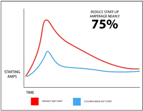 Coleman Mach Soft Start Kit for new AC units or easily retrofitted into existing units. By reducing power surges during startup. The Soft Start  Kit safeguards your AC from breaker trips, and enhances overall efficiency by minimizing power consumption during operation.