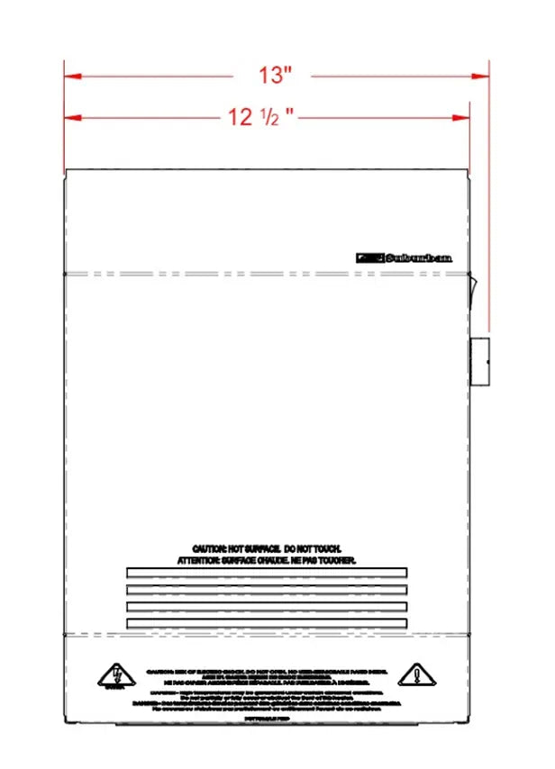Dimensions | Overall Product: 13" W x 17" H x 5" D Required Clearance: 4" (Sides & Bottom), 12" (Top), 20" (In Front) |