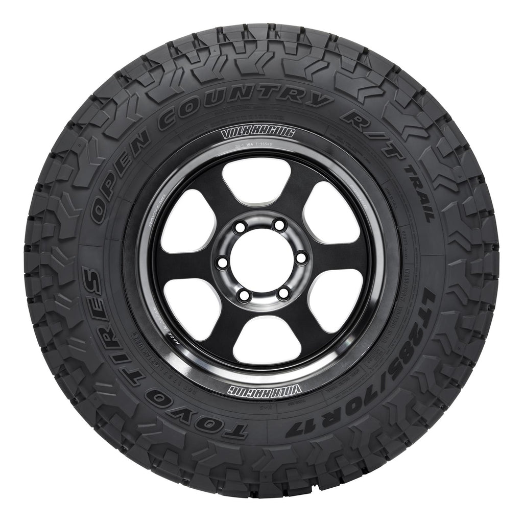 Toyo Open Country R/T Trail rugged terrain tires deliver better off-road grip than a traditional all-terrain tire, most evident in the sand, mud, and deep snow. The extra-thick shoulder and sidewall lugs dig into deep and soft terrain. This thickness also provides impact and puncture resistance. With the off-road chops to perform in varying terrain, Open Country R/T Trail tires are designed for light-truck and SUV owners who want more off-road capability than a traditional all-terrain, without the noise and harshness of a dedicated mud tire. These radial black walls are available in a wide range of sizes.
